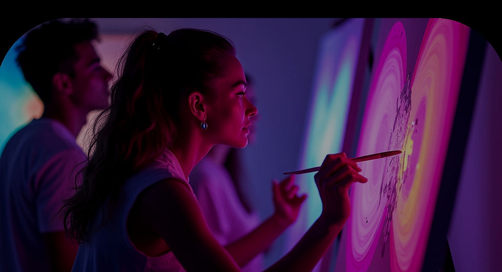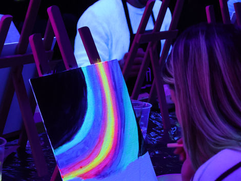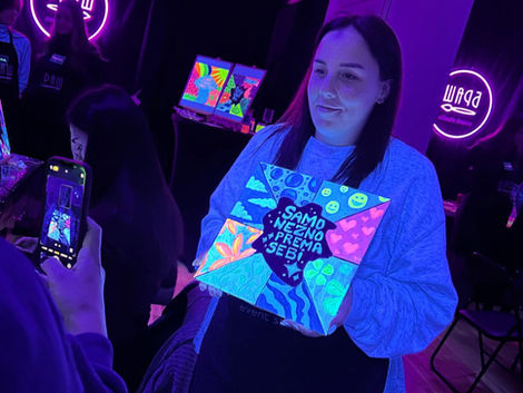 Naše radionice su osmišljene kao iskustvo, a ne klasičan čas slikanja. Kombinujemo neon boje, muziku, UV svetlo i druženje kako bismo stvorili prostor u kome se ljudi opuštaju, povezuju i inspirišu.